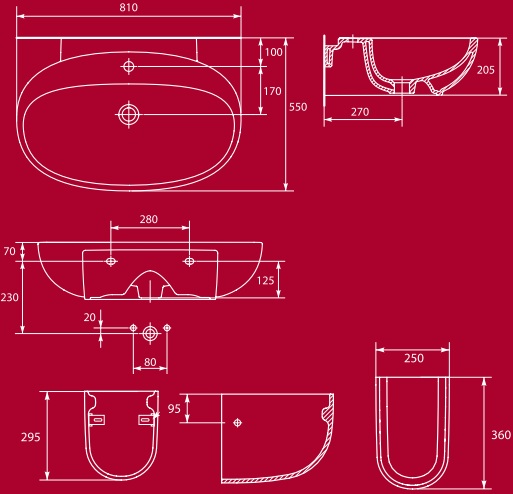 * Монтаж на тумбу, столешницу или с полупьедесталом