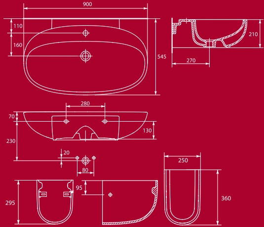* Монтаж на тумбу, столешницу или с полупьедесталом
