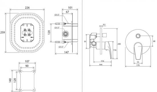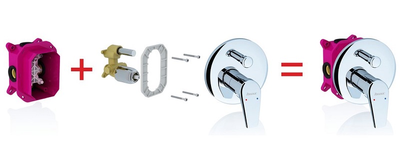 Скрытая часть R-box является идеальной и универсальной системой для ванны и душа. Корпус выполнен из латуни высокого качества. В отличие от обычных смесителей, с R-box значительно проще поменять внешнюю часть смесителя. R-box устанавливается в стену из любого материала. Монтажная глубина от 70 до 100 мм. В комплект R-box входит крепеж для монтажа к стене, но он не предусматривает подключение к воде. С помощью пластиковой заглушки, входящей в комплект, обеспечивает полную функциональность водопроводной системы без необходимости установки верхней части.