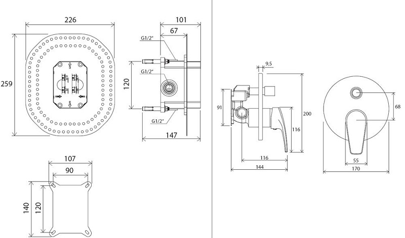 арт. X070045 - Смеситель скрытого монтажа Neo NO 065.00 с переключателем