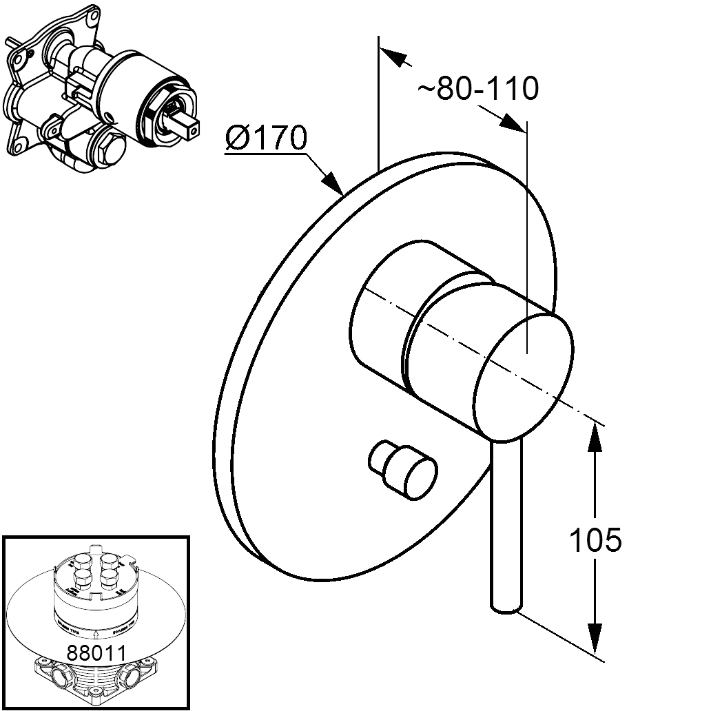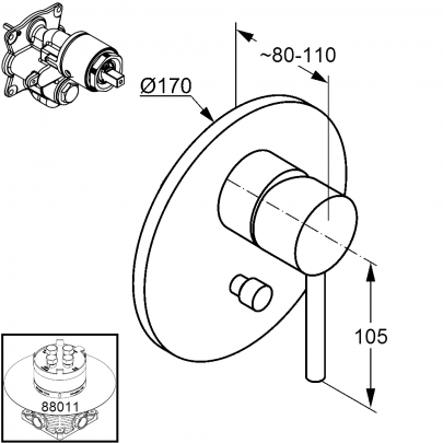*арт. 386500576 - Смеситель для ванны и душа Zenta, хром - однорычажный, литой рычаг - внешняя монтажная часть - функциональный элемент с керамическим катриджем - катридж с ограничителем горячей воды - автоматическое переключение душ/ванна - класс расхода воды DC - класс шума I