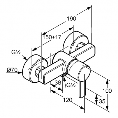 *арт. 388708675 - Смеситель для душа Zenta, черный/хром - однорычажный, литой рычаг - настенный монтаж - керамический катридж с ограничителем горячей воды - s-образные эксцентрики - отвод для душа G 1/2 - защита от обратного тока воды - класс расхода воды A - класс шума I