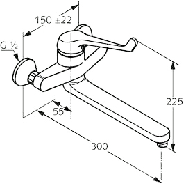 *арт. 331150564 - Смеситель для умывальника Medi Mix, хром - длинный рычаг - настенный монтаж - длина излива от стены 300мм - Care-аэратор M 24x1 - керамический катридж с ограничителем горячей воды - поворотный излив с возможностью фиксации - эксцентрики - класс расхода воды Z - класс шума I