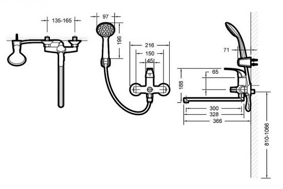 * Смеситель для ванны с душем излив 300 мм + шланг/душ Fit 7F6135188CP-LB-RUS (180649)