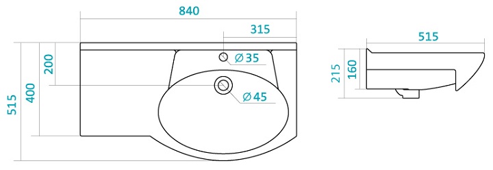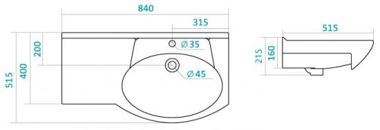 арт. WH110225 - Раковина мебельная Santek Коралл-82 (левое крыло)