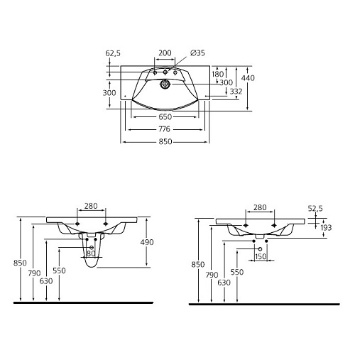 * Центральное отверстие под смеситель