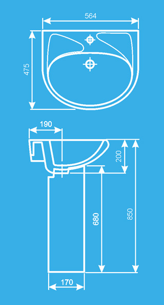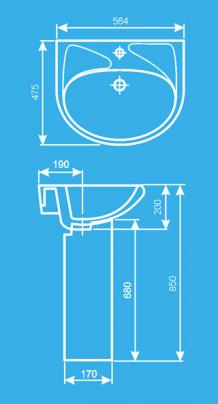 арт. 1.3111.8.S06.11B.0 - Умывальник "Вест" с отв. под смеситель и переливом (хром. кольцо), 1 сорт, цвет голубой - 1103 руб.