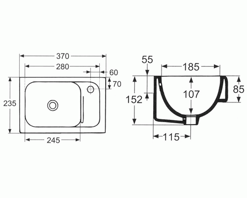 *Отверстие для смесителя слева