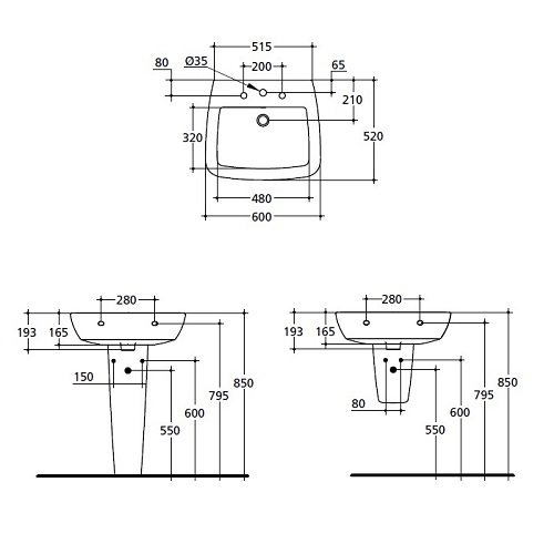 * Центральное отверстие под смеситель