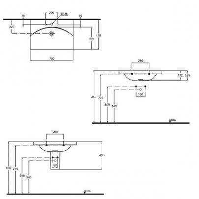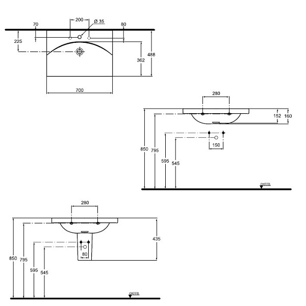 * С интегрированным переливом (необходим смеситель с донным клапаном)