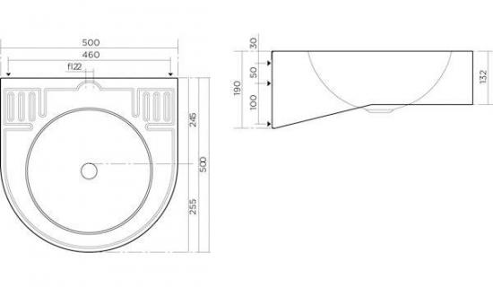 *Раковина подвесная арт. 702060200 Характеристики: - Материал: нержавеющая сталь 304 AISI - Поверхность: глянцевая полировка - Две встроенных мыльницы - Рекомендуемая высота установки: 850-900 мм от пола до верхнего края раковины - Монтаж: навесная, интегрированный крепеж - Открытый сток - Внешние габариты: 500х500х190 мм - Размер чаши: Ø 360 х 132 мм - Вес: 4,5 кг