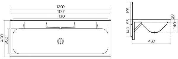 *Умывальник рядный на 2 человека арт. 703070200 Характеристики: - Материал: нержавеющая сталь 304 AISI - Поверхность: полированная - Без дополнительной защиты по углам - Одна раковина, незначительный уклон к сливу посередине, открытый сток - Без отверстия под смеситель - Монтаж: интегрированный крепеж к стене - Рекомендуемая высота установки: 850 мм от пола до верхней части раковины - Декоративная стеновая панель: 1200x195 мм - Внешние габариты: 1200х430х388 мм - Размер чаши: 1130x300х130 мм - Вес: 6,7 кг