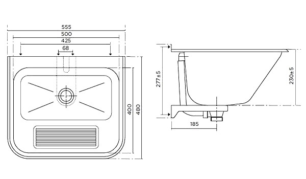 *Раковина подвесная арт. 705060200 для ручной стирки Характеристики: - Материал: нержавеющая сталь 304 AISI - Поверхность: полированная - Слив-перелив - Монтаж: к стене, интегрированный крепеж - Рекомендуемая высота установки: 900 мм от пола до верха раковины - Внешние габариты: 555х480х230 мм - Размер чаши: 500х400х230 мм - Объем: 34 л - Вес: 3,01 кг