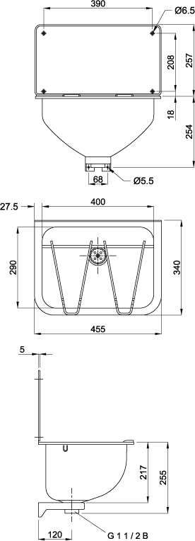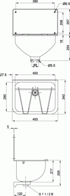 Раковина из нержавейки с задней стенкой и решеткой для монтажа на стену