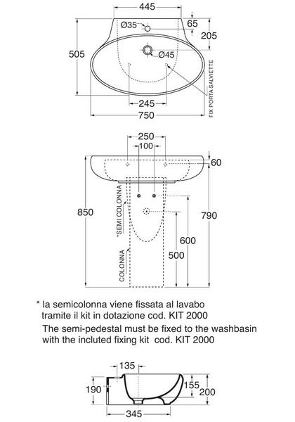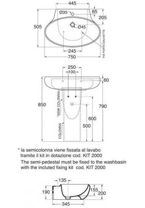 арт. CLA200B1/75 - Раковина подвесная Clas 05