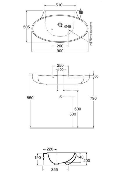 Умывальник 90 см без отверстия под смеситель Clas 05 фирмы Azzurra