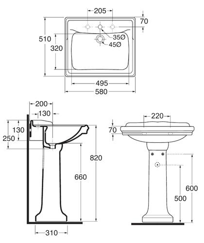 *умывальник арт. GIU200 58/ALZA 1 отверстие под смеситель, намечены дополнительные отверстия