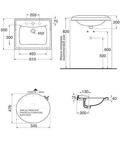 Умывальник встраиваемый из коллекции Guinone фирмы Azzurra