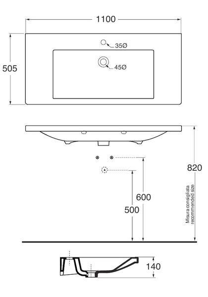 Умывальник подвесной 110 см из коллекции Thin фирмы Azzurra