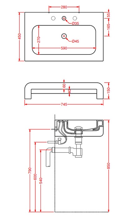 * арт. L030R - Раковина La Fontana, бело-красная