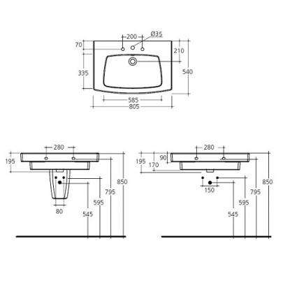 * Форма: прямоугольная * Центральное отверстие под смеситель * Два дополнительных отверстия подготовлены * Для монтажа соло, с колонной/полуколонной или с подстольем Ideal Standard Ventuno Step (T7226WG) * Перелив * Без креплений * Цвет: белый