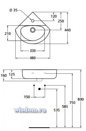 Раковина угловая 48 см Ideal Standard Connect Arc E793101