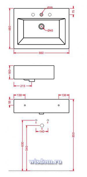 * 1 отверстие под смеситель