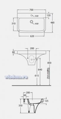 арт. TUL200B1/70 - Раковина Azzurra Tulip