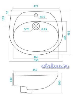арт. WH110460 - Раковина Santek Бриз, 55 см