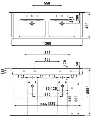 Pаковина двойная накладная Laufen Pro 1496.7 (Швейцария)
