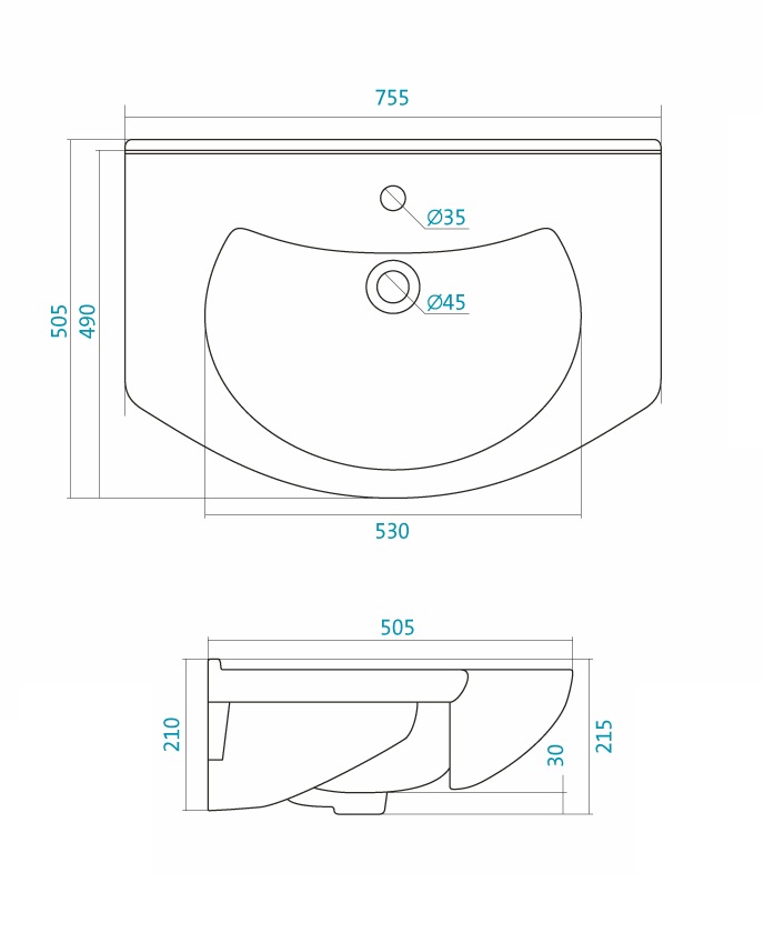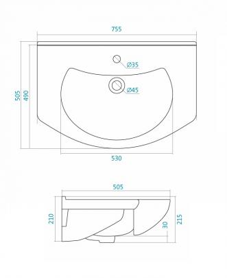 арт. WH110177 - Мебельная раковина Santek Модерн 75