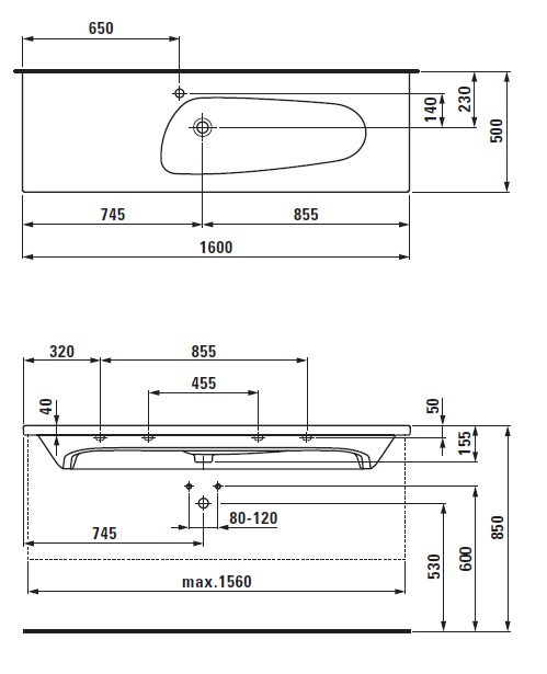 160 × 50 × 15.5 см.