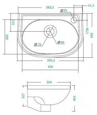 *Отверстие под смеситель слева