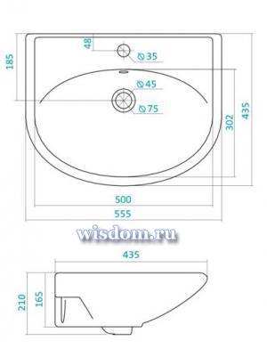арт. WH110526 - Раковина Santek Цезарь 60 см *Монтируется к стене при помощи винтов *Отверстие под смеситель *Без пьедестала *Изготовлена из экологически безопасного сырья *Идеально гладкая поверхность *Гарантия - 5 лет