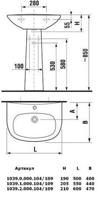 *арт. 1039.0 000 104 - Раковина 50 см с отверстием под смеситель