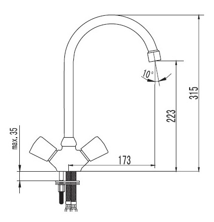 *Двуручковый смеситель с керамическими кран-буксами (угол поворота - 180)