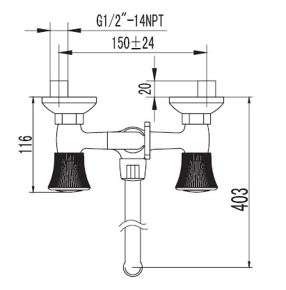 *Двуручковый смеситель с керамическими кран-буксами (угол поворота - 180)