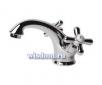 Серия "Ретро" Смесители серии "Ретро" стилизованы "под старину", благодаря элегантным крестовым металлическим маховикам. Они имеют две вентильные головки на 20 шлицов с керамическими прокладками. Смесители для кухни и умывальника (настольные) оснащены гибкой подводкой 35 см. Все настенные модели смесителей имеют эксцентрики 1/2-3/4. Настольный смеситель для умывальника, "лягушка" малая, керамика, хром Керамические вентильные головки Гибкая подводка G1/2’’ Система крепления EasyFix Аэратор тип “Perlator”