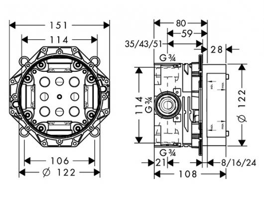 * iBox® universal – Революция в области скрытого монтажа продолжается! Маленькая душевая кабина, выпирающий из стены смеситель – к сожалению, часто под душем бывает не до удовольствия. Скрытый монтаж высвобождает пространство благодаря тому, что корпус смесителя монтируется в стене, оставляя больше места на поверхности. С iBox universal компания Hansgrohe предложила новую систему скрытого монтажа, при которой на скрытую в стене часть можно устанавливать совершенно разные наружные. С 2001 года, когда iBox universal был впервые представлен на рынке, и до сегодняшнего дня он остается первой и единственной скрытой частью, подходящей к любым стандартным и термостатическим смесителям. Благодаря своей универсальности и возможности подключения различных душей этот продукт установил новые стандарты в своей области.