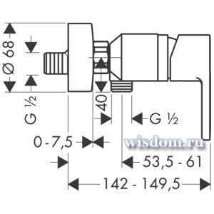Смеситель для душа, однорычажный *керамический узел смешивания *крепление рукоятки Boltic *защита от обратного тока воды *ограничитель температуры воды *расход воды 22 л/мин *штихмас 150 ± 16 мм *подводки с шумопоглощающим эффектом