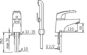 *Излив: длина 110 мм, высота 55 мм