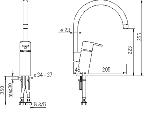 *Излив: длина 205 мм, высота 223 мм