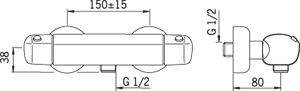 *Тип: термостат *Назначение: для душа *Покрытие: хром *Максимальный расход воды: 17.4 л/мин *Способ монтажа: вертикальный *Количество монтажных отверстий: 2 *Система быстрого монтажа: есть *Присоединительный размер: 3/4"
