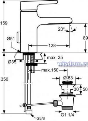 - Арт. A4598AA - Однорукоятковый смеситель для умывальника под 1 отверстие, водопадный излив