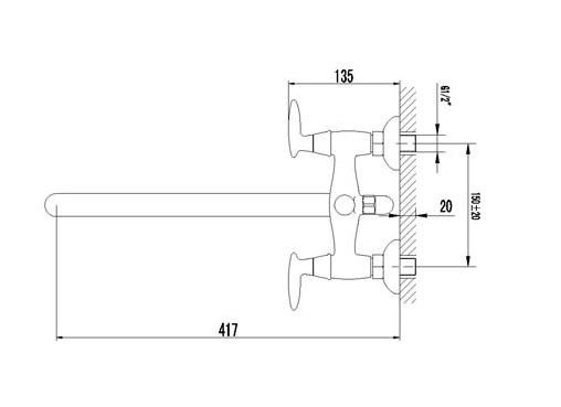 *Двуручковый смеситель с керамическими кран-буксами (угол поворота - 90)