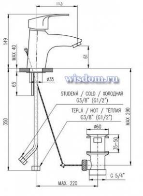 *Смеситель для умывальника с открыванием слива