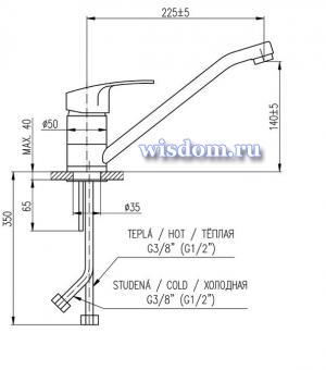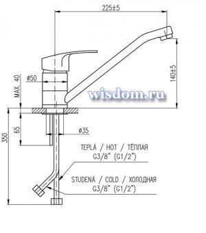 *Смеситель для мойки с поворотным изливом 225 мм