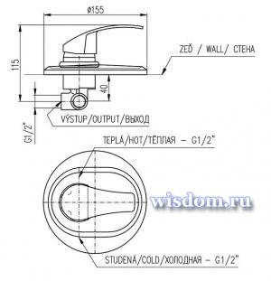 *Смеситель для душа монтирующийся в стену без переключателя, декоративная крышка d=155mm