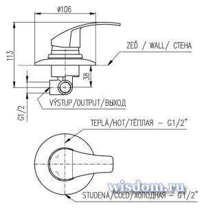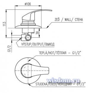 *Смеситель для душа монтирующийся в стену без переключателя, декоративная крышка d=106 mm