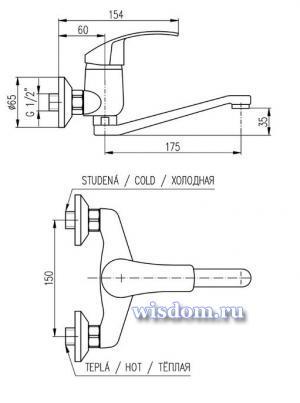 *Смеситель для мойки, настенный с плоским краном - 200 мм